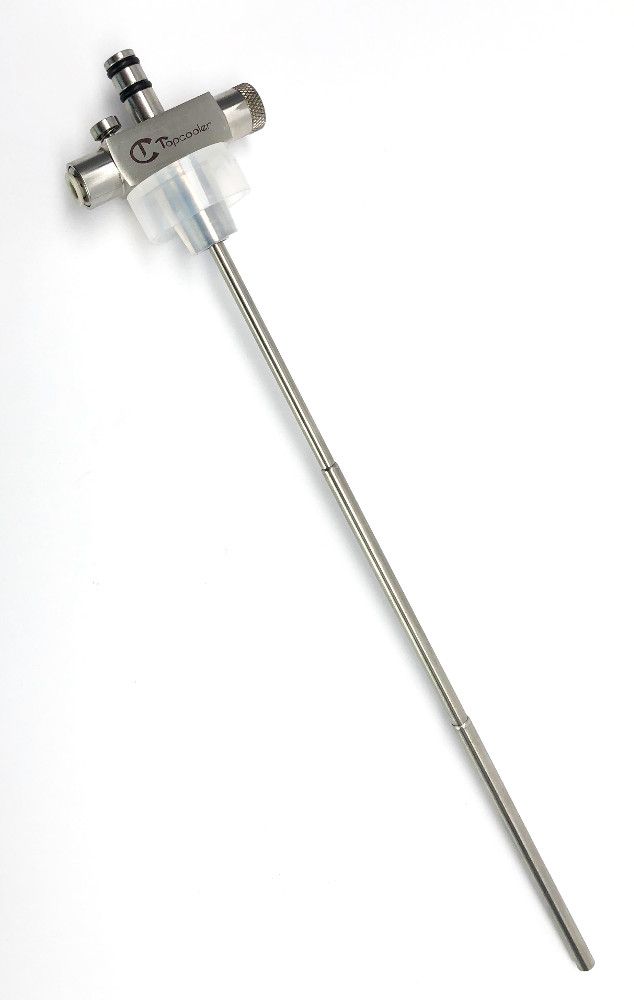 CO2 and beer are filled from the bottom of the bottle through the bottle connector tube. The tube is telescopic, enabling filling of bottles from 10.5 to 31.5 cm in heigth. When filling taller bottles, the tube will not reach the bottom of the bottle. Tapcooler’s bottle mouth seal is made from food grade silicon and includes a flange to direct potential overfills to the sides of the bottle.